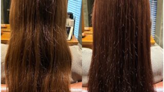 原因は、髪の内部にある「栄養バランスの偏り」によるものでした。髪の芯が安定していないため、乾燥や湿気によってうねりが出やすく、ツヤが乱れて見える状態でした。