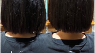 【原因】 原因は、髪の内部の「栄養不足」と「水分バランスの乱れ」によるものでした。ダメージによって髪の芯が不安定になり、本来の重みが失われたことで、クセが強く出やすい状態になっていました。